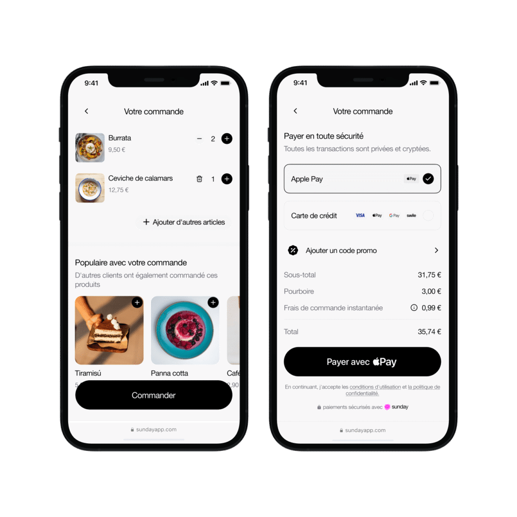 Un menu moderne avec paiement CB, Apple Pay & Google Pay, Wave, Orange et MoMo. Pensé pour améliorer le service des : restos, hôtels, billetterie…